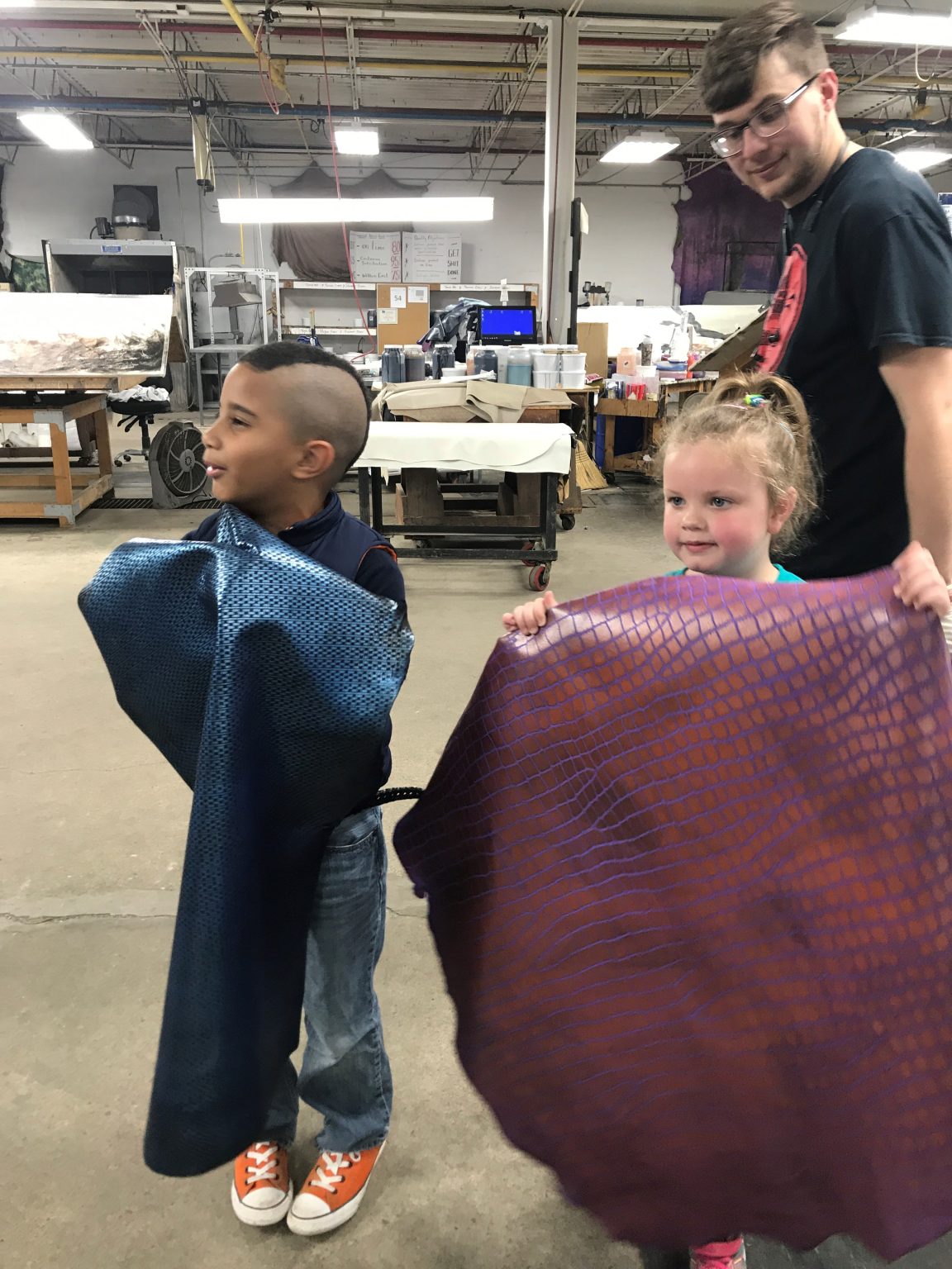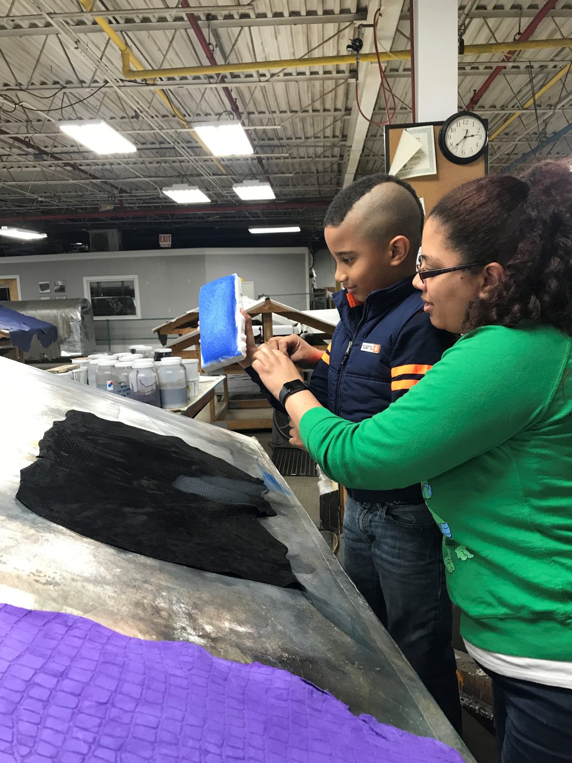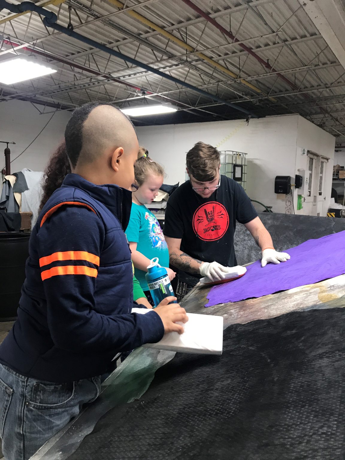 We were able to take a big group tour, handing out lots of scrap leather, seeing awesomeness in action, and even enjoying some ice cream all together as a family team.